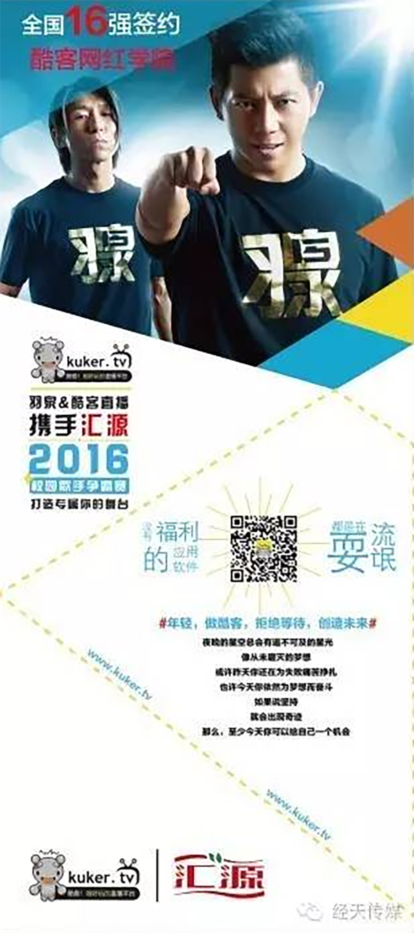 各场初赛第一名,获汇源果汁奖学金3000元,第二、三名获丰厚礼品;半决赛的冠军得主,获奖学金10000元,二、三名有丰厚礼品赠送。全国总决赛16强,可直接签约羽泉酷客网红学院,酷我量身打造线上专辑全国霸主获汇源果汁奖学金30000元,可成为汇源产品代言人,与顶级音乐人一同参加香港国际青年音乐节。