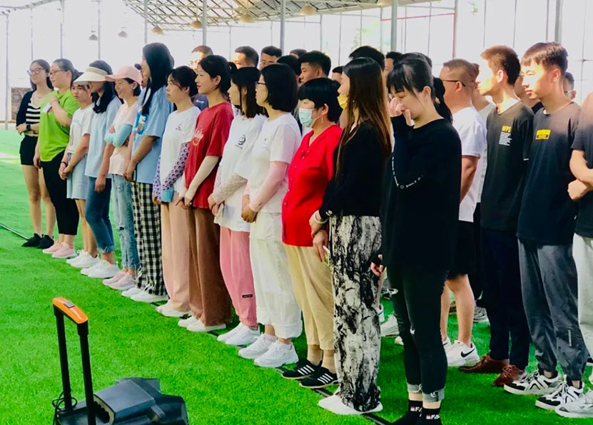 在正式团建之前,经验丰富的教练员为了热络场子,随即开启了一些破冰小游戏,大家刚入场地,难免有些陌生,鼓掌、握手、大笑,一点点消融了彼此之间的冰意,游戏的解读声“大螃蟹,爪八个······声声入耳,各种喜悦的笑声响荡在训练场地”。